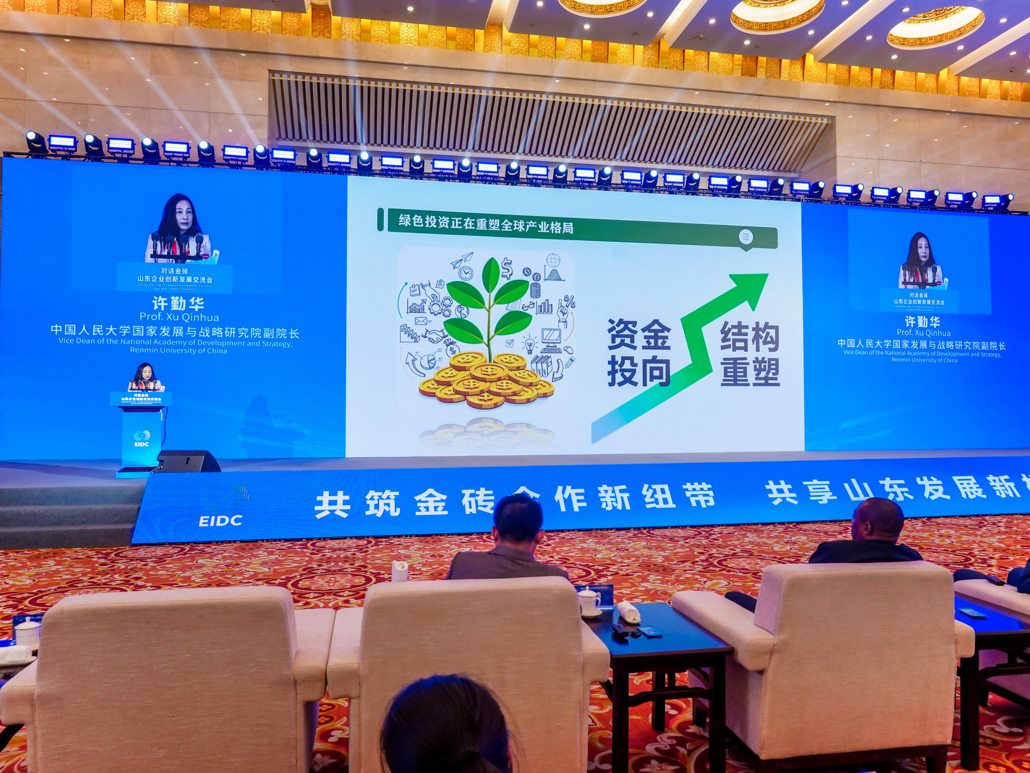 中国人民大学国家发展与战略研究院副院长许勤华教授则在题为《金砖国家绿色发展合作的潜力分析》的演讲中表示,早在2024年,金砖国家扩员至11国时,不仅经济规模超过了“G7”,还贡献了全球51%的太阳能发电量!当下,金砖国家市场需求在快速增长,不乏政策与制度支持,具有成本技术优势,还实现了金融协同。预计在未来数年,山东将重点拓展与金砖成员国、伙伴国的经贸合作领域,强化新能源、智能制造、新材料等新兴产业投资布局,稳步提升绿色投资占比。