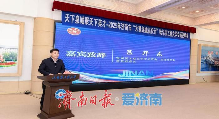 在哈尔滨工程大学宣讲会上,市委组织部副部长、市委人才办常务副主任王玉跃推介了济南,欢迎哈工程学子到济南施展才华、实现梦想,将为大家在济南创新创业、工作生活提供全方位的细致服务,让各位英才在济南绽放一路繁花,收获似锦未来。哈尔滨工程大学党委常委、宣传部部长、统战部部长吕开东表示,近5年来已有400多名哈工程学子选择济南,为济南高质量发展贡献了哈工程力量,希望同学们将个人理想追求主动融入国家与区域发展宏伟蓝图,在泉城这片热土上书写属于自己的精彩篇章。